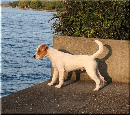 Am Sonntag den 06.04.2008 besuchten wir Hermann Kurz und seine "Berta" mit ihren Jungs "vom Rossgumpen". Es ist immer wieder schön zu sehen, was aus Billys Nachzucht geworden ist! Die Kleinen haben sich mehr als prächtig entwickelt und haben ein fantastisches Wesen. Nachdem wir uns alle gestärkt hatten gingen wir im nahegelegenen Revier spazieren. August-Otto war total an Billy interessiert und verfolgte ihn überall....wie ein kleiner Schatten ;-) Später, nach der Kaffeepause ging es in den Garten und wir erfreuten uns an dem wunderschönen Anblick einer fröhlichen Russellfamilie! Schade, die Zeit verging wiedermal viel zu schnell und wir mussten den Heimweg antreten ... Es war ein super schöner Tag, der uns sicherlich in guter Erinnerung bleibt!