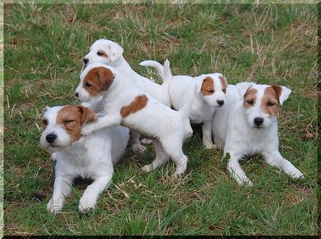 Am Pfingstmontag besuchte ich mit Billy die Zuchtstätte "von der Russellbande"! Da der I - Wurf nach unsererm Billy nun 6 1/2 Wochen ist, wurden wir von den Züchtern eingeladen, "die kleine Russellbande" anzuschauen! Alle Welpen sind gesund und selbstbewusst, haben sich fantastisch entwickelt! Ein wirklich ruhiger und ausgelichener Wurf! Hier nun ein paar Fotos des Wurfes!