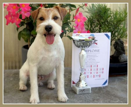 Unser Sheldon zeigt sich wie immer sehr souverän, lief hervorragend und gewann an diesem Tag das V2, Res.CAC. Der Richter meinte es war sehr knapp!! ;-) Schwarz/ weiß war an diesem Tag mehr gefragt :-) Eine wunderschöne Klubsiegerschau, sehr viele PRT /JRT, viele schöne Preise und bestens organisiert immer eine Reise wert!! Wir trafen dort viele Freunde und lernten neue Züchter kennen! Nächstes Jahr kommen wir wieder und versuchen unser Glück! 17.07.2016 Ausstellungsergebnisse: KfT Klubsiegerschau in Bensheim Ch.Red Rock Big Bang Theory "Sheldon" in der Champion Kl. V1, VDH, CAC, BOB!